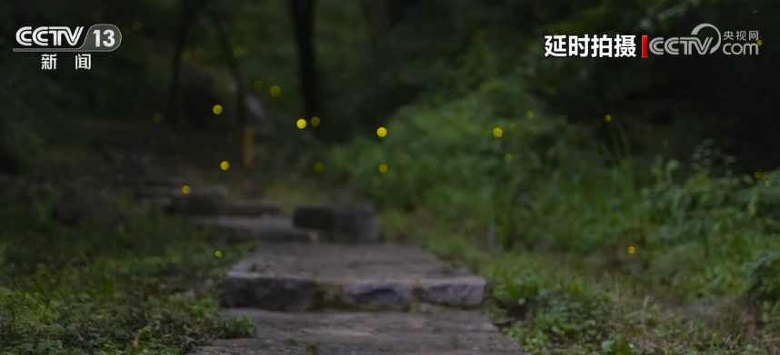 央视网消息:盛夏时节,夜晚的江苏句容宝华山国家森林公园里,萤火虫林间飞舞,化身繁星点点。