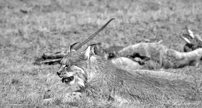 猞猁捕食雄性藏羚羊后,在猎物旁休息。摄影:卓玛加
